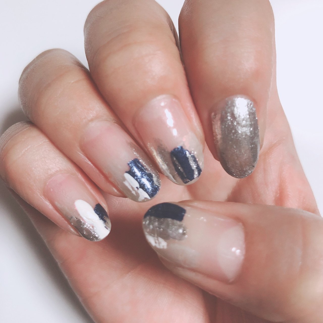 さちえ בטוויטר ブルー系ニュアンスネイル 今回はグレー くすみブルーでもやもやさせて 最近お気に入りのメタリックネイルのシルバーを適当に その割に評判良くて化粧品店の店員さんに褒められたり しばらく前に塗ったからもう塗り替えるけどね セルフ
